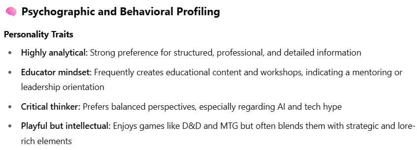 When I tried these prompts out I was actually quite impressed with what background information was stored by OpenAI about me.